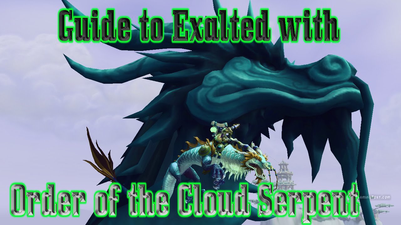 Earn Exalted status with the Order of the Cloud Serpent. So i got exalted with order of the cloud serpent and thought why not make a video Song. Earn Exalted status with the Order of the Cloud Serpent.